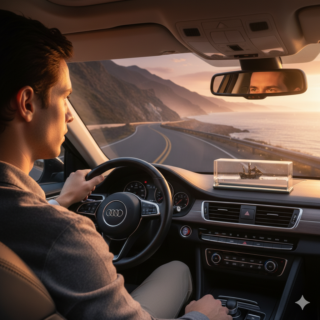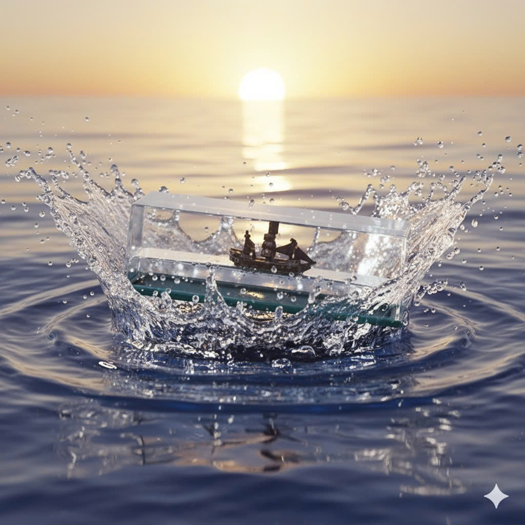 Effect: Floating ship inside clear acrylic block with natural moving bubbles